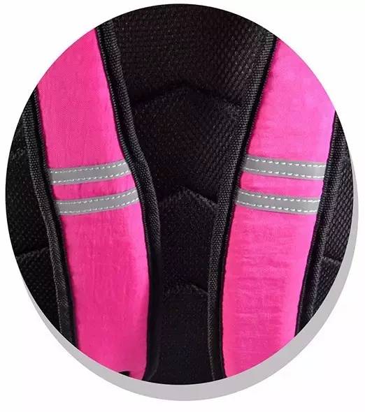 整個(gè)背部墊有減沖棉,貼合人體設(shè)計(jì),背部貼合三文治網(wǎng)布更透氣