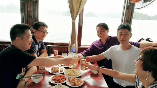 16日天氣轉晴,阿松說他們信奉燒香拜佛,前天晚上燒香至凌晨4點祈禱天氣晴朗讓我們去體驗下龍灣的風采,果然皇天不負有心人。于是18羅漢愉快地開啟了早餐時刻:越南的牛肉粉真的巨好吃,每個人至少只吃了3碗而已。