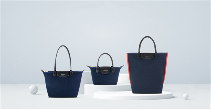1:藍色帆布面料圖案為壓凸紋路,呈現立體效果,更顯質感。