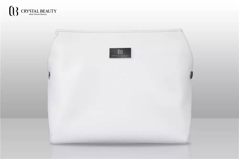CB愛斯貝綺化妝包,沒有華麗的妝飾,純白的外觀搭配了4個銀色金屬扣和一個銀色CB LOGO,簡約大氣,又如美麗般一塵不染。