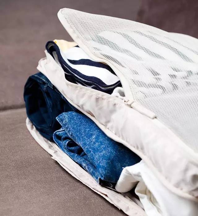 衣物袋是雙層的,可以把褲子和上衣分開裝,一般可以裝2-3條褲子,3-4件T恤。而且,上層是可視型網格設計,方便看清里面的衣物,找起來也方便。