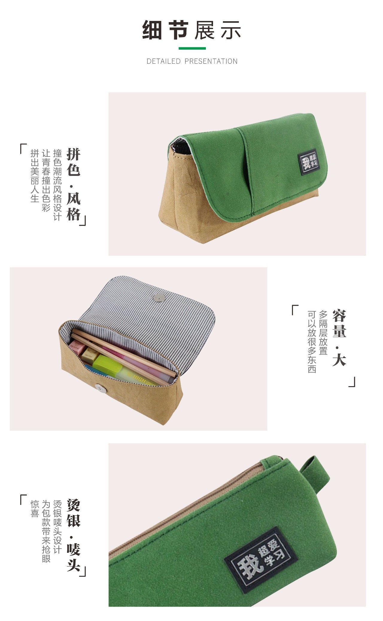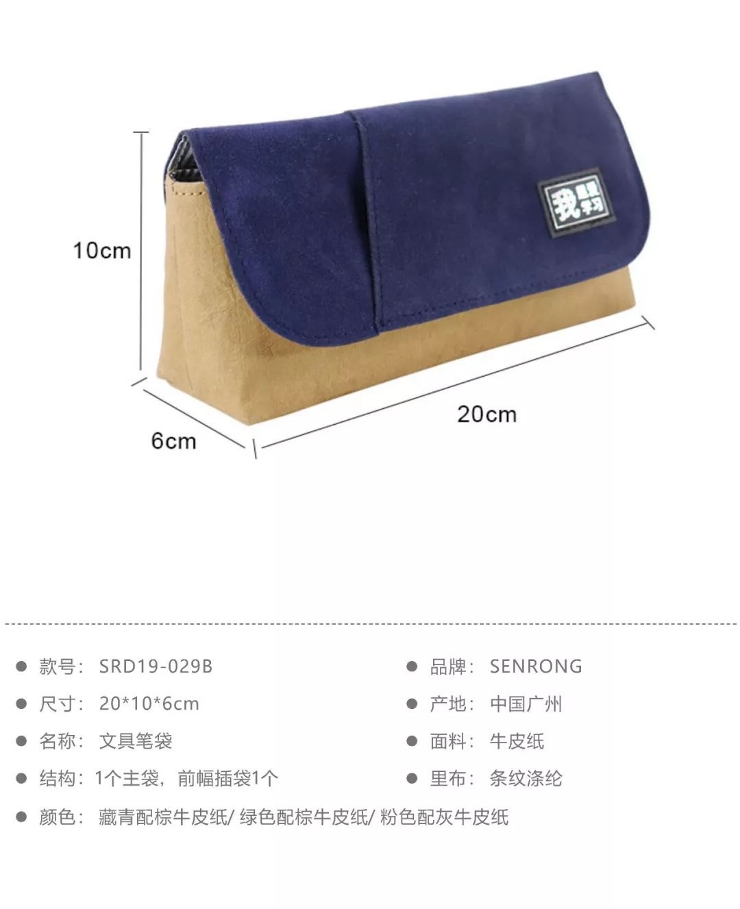 這款紙質的筆袋采用水洗牛皮紙